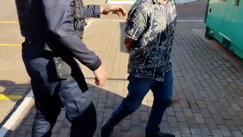 Para garantir a segurança da equipe, de terceiros e do próprio conduzido, foi necessário o uso de algemas, conforme previsto na legislação vigente.