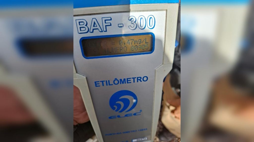 Durante o procedimento, o condutor realizou o teste do etilômetro que apontou um resultado de 0,47 miligramas de álcool por litro de ar expelido, índice que configura crime de trânsito conforme o Código de Trânsito Brasileiro.