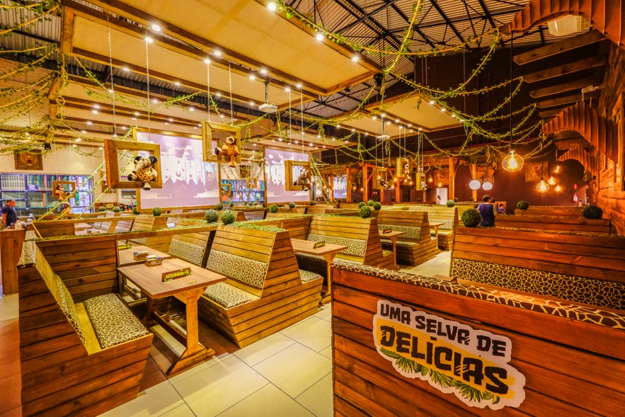 O cardápio e a ambientação da unidade seguem os mesmos padrões já consolidados e queridos do público: uma experiência temática inspirada na selva, com pocket show, cardápio personalizado com nomes de animais selvagens e a decoração rústica e acolhedora com estampas de animais e estruturas em madeira.